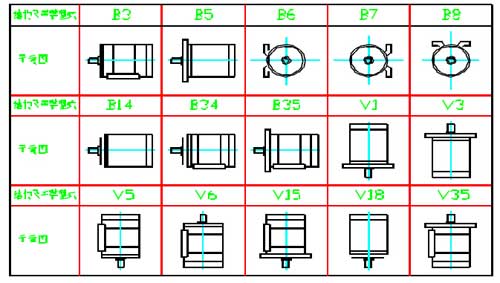 YBX4防爆電機的安裝方式符合GB997《電機結構及安裝型式代號》及IEC34-7 的規(guī)定。本系列電動機有以下5 種基本結構型式:B3—機座帶底腳、端蓋無凸緣;B5—機座不帶底腳、端蓋有凸緣;B35—機座帶底腳、端蓋有凸緣;B14—機座不帶底腳、端蓋有小凸緣;B34—機座帶底腳、端蓋有小凸緣。本系列電動機在上述5 種基本結構上,可派生15 種常用結構及安裝型式見下表: