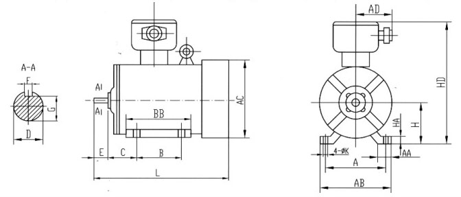 YBX3防爆電機(jī)B5安裝方式對(duì)應(yīng)圖表